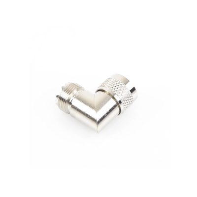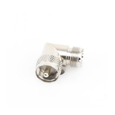 Adaptador en Ángulo Recto, de Conector UHF Macho (PL-259) a UHF Hembra (SO-239).