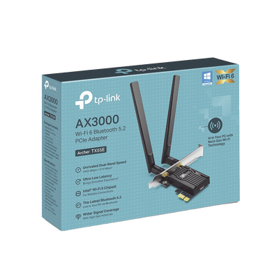 Adaptador PCIe inalámbrico doble banda AX3000 Mbps / Seguridad Inalámbrica WPA3 /Antena de alta ganancia / Tecnología MU-MUMO 2X2 / Soporte de perfil bajo y Altura completa / Bluetooth 5.2
