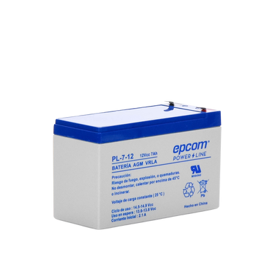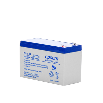 La serie de baterías EPCOM POWERLINE, están diseñadas con tecnología AGM-VRLA ( Fibra de vidrio absorbente, con válvulas de regulación), placas de alto rendimiento y electrólito para proporcionar una salida de energía adicional. Las baterías de la serie EPCOM POWERLINE son baterías de respaldo para equipos electrónicos, con una vida útil de diseño flotante de 5 años a 25°C. , aprobado por UL ( MH64542 ).