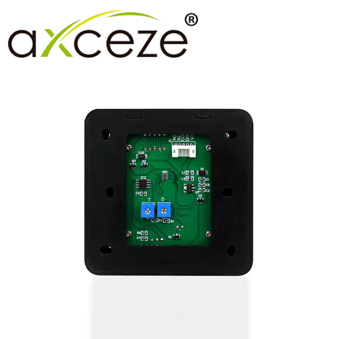 AXCEZE AX-B150El botón liberador sin contacto AXCEZE NO TOUCH AX-B150 permite la apertura de puertas de manera inmediata sin necesidad de presionar un botón o pasar una tarjeta. Además gracias a su relevador integrado permite controlar la apertura automática de una puerta, en conjunto con una contra chapa magnética o chapa magnética.El botón le permitirá la apertura de una puerta solamente pasando su mano a una distancia de 5-20 cm del sensor y con eso será suficiente para que se active la apertura de la puerta. Y al no haber contacto físico con el lector, lo mantiene limpio e higiénico, el tiempo de vida es mayor y permite una gran rentabilidad. Aluminio y ABS Para instalación en interiores Activación inmedita Hasta 500,000 eventos de vida mecánica Alimentación 12/24 VDC 1A (Fuente no incluida) LED Indicador, LED Azul (Reposo) LED Verde (Activo) Interruptor Tipo NO y NC Relevador de contacto seco de alta capacidad (12-24 VCD, 3A) Temperatura -20 °C~ 55°C (-4-131F) Peso: 0.093kg Dimensiones 86L*86W*16H Tiempo de retardo 0~30 Segundos. (Ajustable) Distancia de detección 5-20 cm Humedad relativa 0-95%