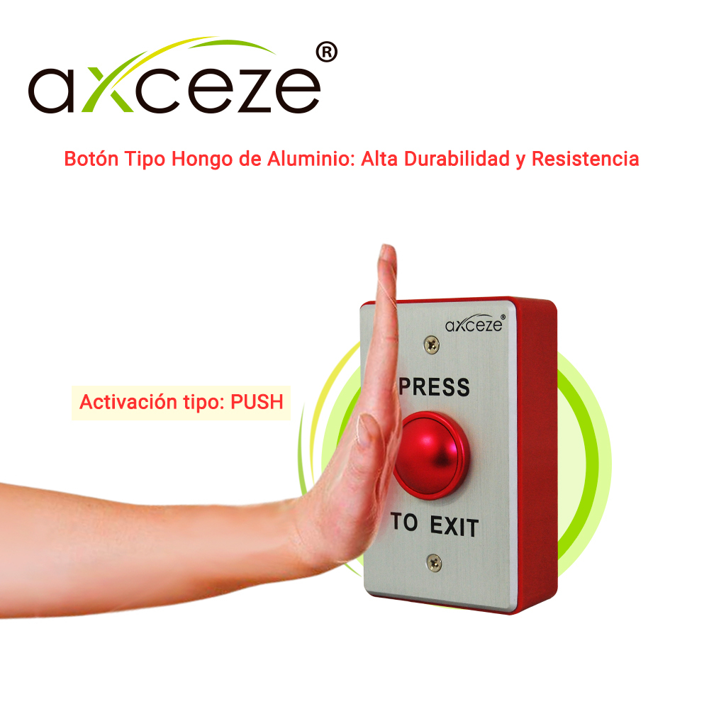 BOTON LIBERADOR PUSH TIPO HONGO AXCEZE AX-B70R EN ALUMINIO CUENTA CON LOS ESTADOS NO, NC
