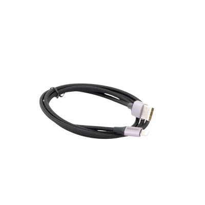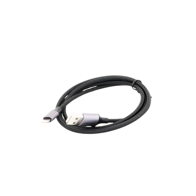 Cable USB-A a Lightning | 1 Metro | Certificado MFi | Carga Rápida 5V/2.4 A | 480 Mbps | Conector C94 | Adecuado para iPhone, iPad y iPod | Protección Integrada | Caja de Aluminio | Nylon Trenzado | Color Negro.