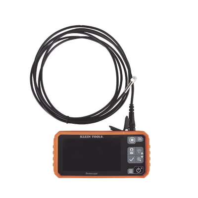 El boroscopio multiusos de Klein Tools captura una vista clara de las áreas de difícil acceso. Viene con una cámara de exploración separable de 10' (3 m) de nylon, USB-C, y accesorios de imán, gancho y espejo. Tiene una cámara impermeable (IP67) de 5,5 mm con LED ajustables con 4 niveles de brillo. Cuenta con un monitor LCD a color de 4,3'' con resolución de 854 × 480, zoom de 3 aumentos y rotación de la vista de pantalla de 180°. Puede ver vídeo o imágenes capturadas en la pantalla o transferirlos a su PC usando la interfaz USB-C.