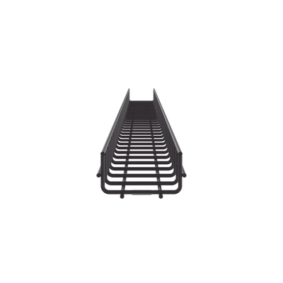 El sistema de enrutamiento de la bandeja portacables tipo malla aérea (Wire Basket) debe constar de secciones de enrutamiento, conectores de unión, paredes laterales, bajantes tipo cascada, soportes de montaje y accesorios diseñados para enrutar y organizar cableado de cobre, fibra óptica o eléctrico. Las secciones de enrutamiento están disponibles en las siguientes anchuras: 102mm (4'), 152mm (6'), 203mm (8'), 305mm (12'), 457mm (18') y 609mm (24'). Las bandejas tipo malla vienen con paredes de distintas alturas: 50mm (2'), 102mm (4') y 152mm (6'). Soportes tipo trapecio, tipo ménsula y de montaje en muro están disponibles para soportar el sistema. Las bandejas, accesorios y componentes están disponibles en negro, blanco y electrozincado.