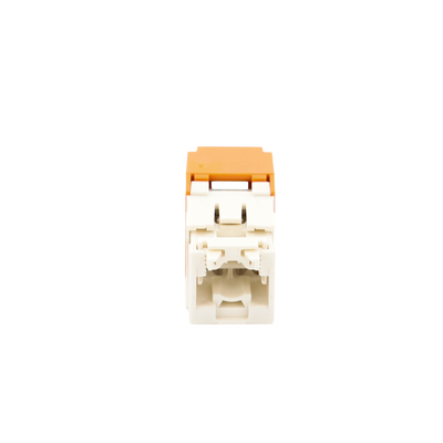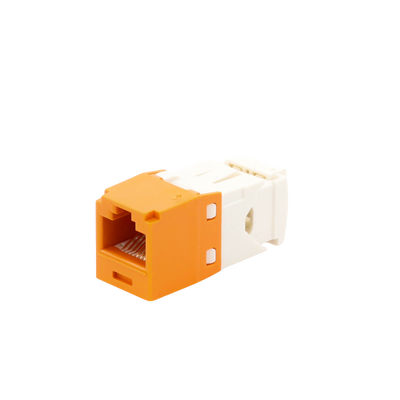 El módulo de conector UTP Categoría 6/Clase E de 8 posiciones, se termina en cable de 4 pares 22 - 26 AWG de par trenzado sin blindaje de 100 ohms y no requiere el uso de una herramienta de impacto. Los módulos de conector UTP usan un método de terminación de movimiento hacia adelante para optimizar el rendimiento al mantener la geometría del par de cables mientras se elimina el destrenzado del conductor. La tapa de terminación esta codificada por color blanco para designar el rendimiento de la Categoría 6 e incluye una etiqueta universal codificada para los esquemas de cableado T568A y T568B.