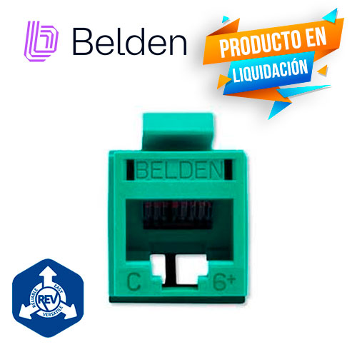 CONECTOR MODULAR JACK RJ45 CAT6 REVCONNECT BELDEN RV6MJKUGN-S1 ESTILO KEYCONNECT VERDE COMPATIBLE CON FACEPLATE AX102660,AX102655,AX102249 ESQUEMA DE CABLEADO T568A/B HERRAMIENTA COMPATIBLE RVUTT01 USO INTERIOR CALIBRE DEL CONDUCTOR 23-24 AWG