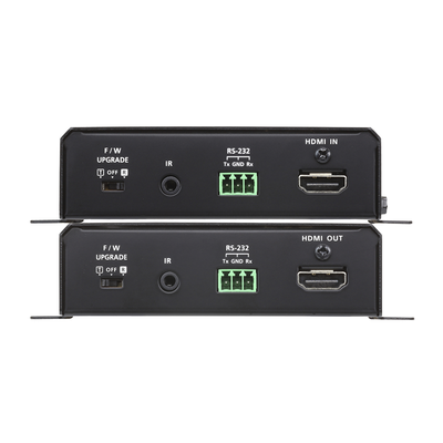 Solución ideal para conectar equipos en ubicaciones remotas de hasta 100 m a través de un solo cable Cat 5e/6/6a. Con el modo de largo alcance habilitado, el VE1812 puede extender la señal HDMI hasta 150 m a 1080p. Admite paso de señalización RS-232 e IR, lo que permite a los usuarios controlar el dispositivo fuente HDMI desde la unidad receptora (VE1812R) y al mismo tiempo acceder al dispositivo de visualización HDMI desde la unidad transmisora ​​(VE1812T). Las señales IR también se pueden extender en ambas direcciones. Cuenta con alimentación a través de HDBaseT (PoH) que envía energía de Tx a Rx a través de un cable Cat 5e/6/6a sin ninguna fuente de alimentación adicional. El VE1812 es compatible con HDMI (3D, Deep Color, 4K) y HDCP. Al transmitir HDMI/4K con un cable Cat 6a o ATEN 2L-2910 Cat 6, la distancia máxima puede alcanzar hasta 100 metros..