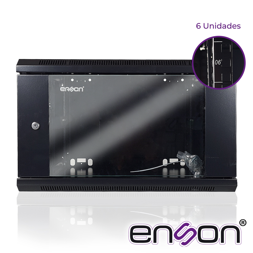 GABINETE DE PARED ENSON ENS-RKGB6UD 6UR PUERTA FRONTAL DE CRISTAL TEMPLADO CON CERRADURA DE SEGURIDAD RANURAS DE VENTILACION EN LA PARTE SUPERIOR PARA 2 VENTILADORES DE 11 CM 600X450X368MM, REQUIERE ENSAMBLAJE