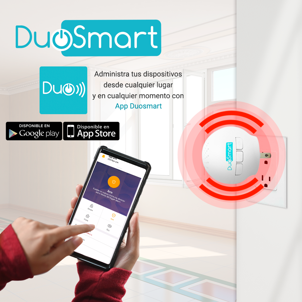 KIT ALARMA INALAMBRICA DUOSMART C20 C20 es un versátil sistema que te permite monitorear desde la aplicación el estado de la alarma. Tiene la habilidad de armar en modo total (Away) o parcial (home) para que tus dispositivos respondan diferente cuando estas en casa o cuando no hay nadie en el hogar brindando la seguridad que necesitas toda casa en este tiempo. Recibe en tu celular notificaciónes de eventos registrados en tu alarma. Puede monitorizar hasta 24 dispositivos totales. El Kit incluye un sensor magnético, un sensor de presencia y un control remoto. Puedes agregar un botón RF como timbre y seleccionar el tono musical así como el volumen. Compatible con WiFi 2.4 GHz (no acepta la banda de 5 GHz) para que te olvides de complicadas conexiones y puesta a punto. Conecta de manera tu nuevo C20 directo a un tomacorriente, los sensores usan baterías CR2450 Especificaciones WiFi 2.4GHz. Hasta 24 sensores Acepta armado modo Home y Away Compatible con APP Duosmart Compatible con sensores RF 433.92 Alimentación del C20 110 VCA Alimentación del sensor magnético batería de 3 VCD modelo CR2450 Alimentación del PIR batería de 3 VCD modelo CR2450 o mediante el conector micro USB de 5 VCD Batería del control remoto batería de 3 VCD modelo CR2032 **NO ES COMPATIBLE CON LA SIRENA INALAMBRICA CSIREN1**