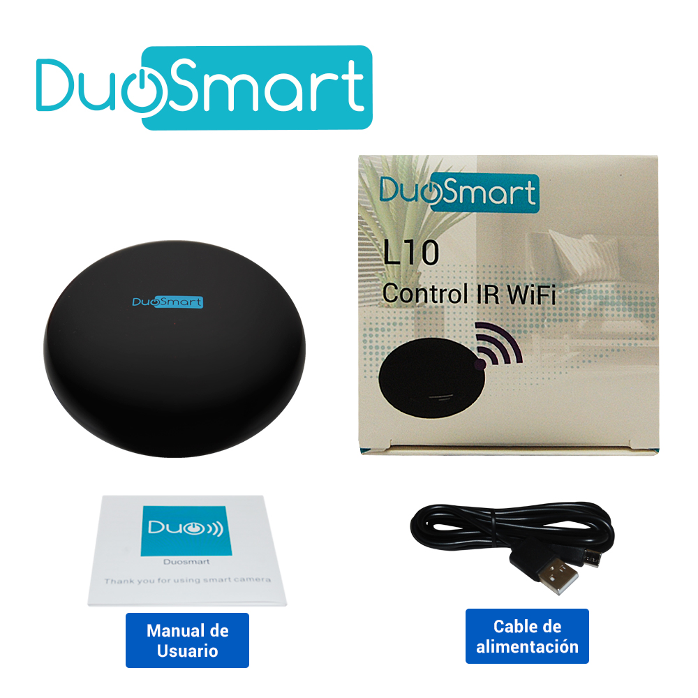 Módulo IR WiFi Duosmart L10 Controla tus equipos por infrarrojo con función de aprendizaje. WiFi 2.4 GHz Controles Infrarrojos Amazon Alexa y Google Home Comunicación Multidireccional Alimentación 5VDC Cable USB incluido (no incluye HUB)