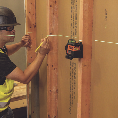 El nivel láser verde autonivelante recargable tiene 3 planos láser verdes brillantes de 360 grados fáciles de leer con un rango de trabajo de 100' (30,5 m), hasta dos veces más brillantes que los haces de luz roja regulares