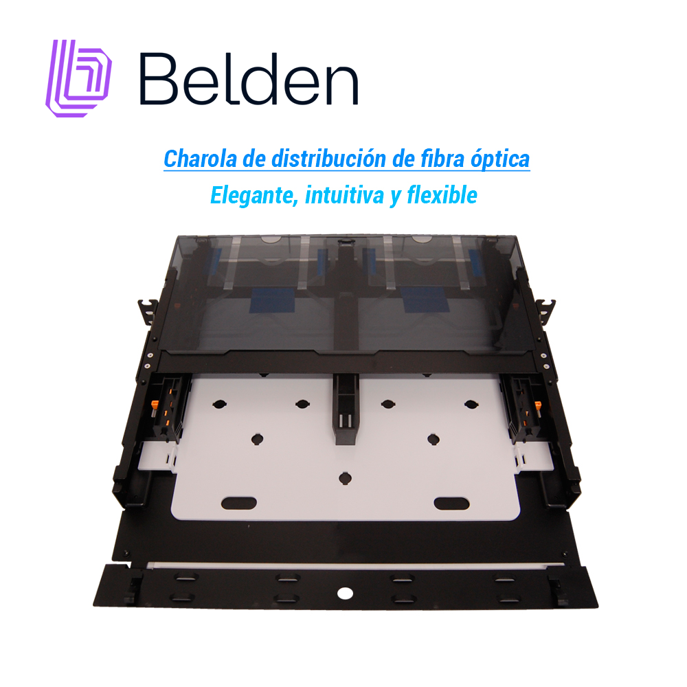 ECX-01U - BELDEN Charola de distribuciónde fibra ópticaECX-01U Es una solución elegante, intuitiva y flexible que ha sido diseñada para maximizar la flexibilidad del instalador en comparación con las soluciones líderes en la industria. Uso: Interior Aplicaciones: Soluciones FiberExpress, Backbone, Sala de telecomunicaciones, Sala de distribución principal, Centros de datos Máxima capacidad: Tiene capacidad para 2 frames o cassettes adaptadores ECX Partes incluidas:Tornillos (12-24); Tornillos (10-32); Abrazaderas; Correas de velcro; Etiquetas de Identificación; Guías de instalación rápida; Alivios de tensión