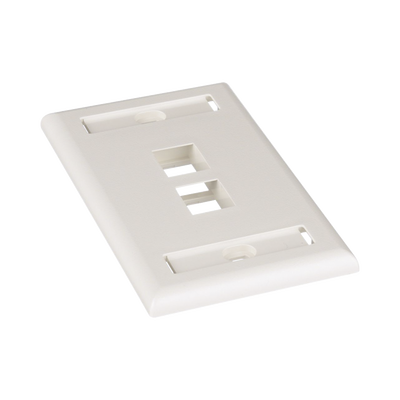 Placa de Pared Vertical, Salida Para 2 Puertos Keystone, Con Espacios Para Etiquetas, Color Blanco Mate