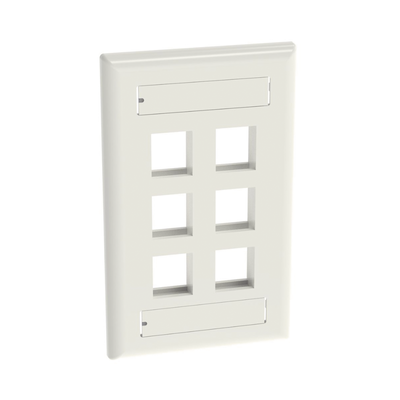Placa de Pared Vertical, Salida Para 6 Puertos Keystone, Con Espacios Para Etiquetas, Color Blanco Mate