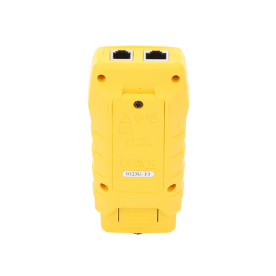 - Probador de cables con botón único de prueba de cables de voz y datos terminados RJ11, RJ12 y RJ45.