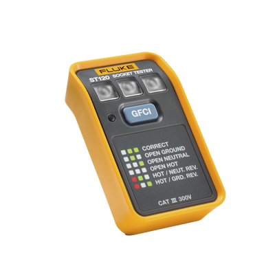 El botón de comprobación de GFCI incorporado en el comprobador ST120 le permite asegurarse también de que el funcionamiento de las tomas de corriente GFCI es correcto. Con una sola pulsación, el ST120 puede verificar el funcionamiento de una toma de corriente GFCI. Si el GFCI se activa como se espera, perfecto, puede continuar. Si no, es hora de revisarlo con más detalle.