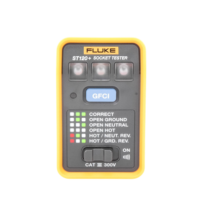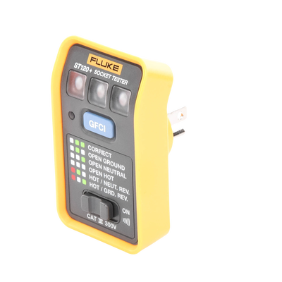 El comprobador Fluke ST120 + GFCI con señal acústica comprueba que los cables de la toma de corriente están conectados correctamente al sistema eléctrico del edificio. Mediante los LED de alto brillo y el gráfico incluido puede verificar rápida y fácilmente el cableado de una toma de corriente. Los comprobadores ST120+, capaces de identificar diferentes errores comunes de cableado, incluida la inversión de fase y neutro o la conexión abierta de tierra, le ayudarán a llevar a cabo sus próximos trabajos con la máxima confianza.