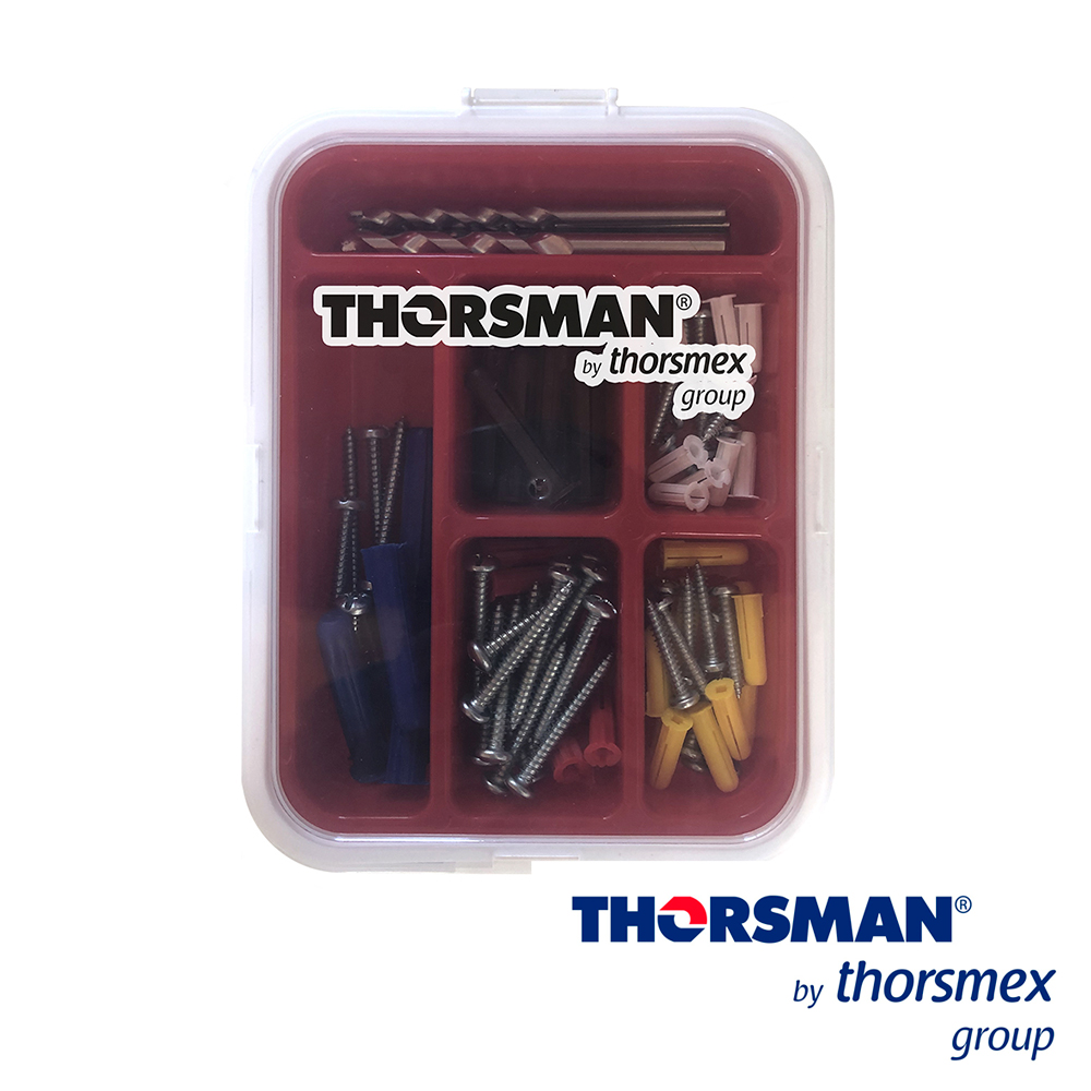 SISTEMA DE FIJACION THORSMAN MODELO 3701-02000 PARA CONCRETO -Taquetes para fijar objetos con tornillo en muros y techos deconcreto o superficies sólidas.-Realiza una doble expansión, es decir que abre hacia loscuatro puntos cardinales.- Consta de 2 aletas que no permiten que el taquete gire dentrodel orificio cuando se introduce el tornillo.-Posee un cuello que impide que el taquete se hunda, aúncuando la perforación sea más profunda.-Tiene una guía que permite que el tornillo se introduzcacorrectamente.- Libre de rebaba que impida la doble expansión- Flexible