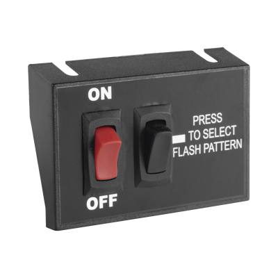 El switch encendido/apagado está iluminado y esta diseñado solo para sistemas de 12Vcc. El interruptor de selección de patrón es momentáneo (Push Boton), el suministra +12 Vcc al cable disparador del patrón de flasheo cuando se presiona.