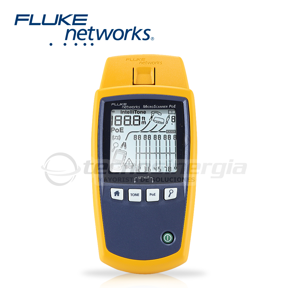 VERIFICADOR DE RED MICROSCANNER POE FLUKE NETWORKS MS-POE PARA COMPROBACIÓN DE REDES DE VOZ, DATOS Y VIDEO DETECTA POE 802.3 AF, AT, BT Y UPOE CON PANTALLA LCD RETROILUMINADA